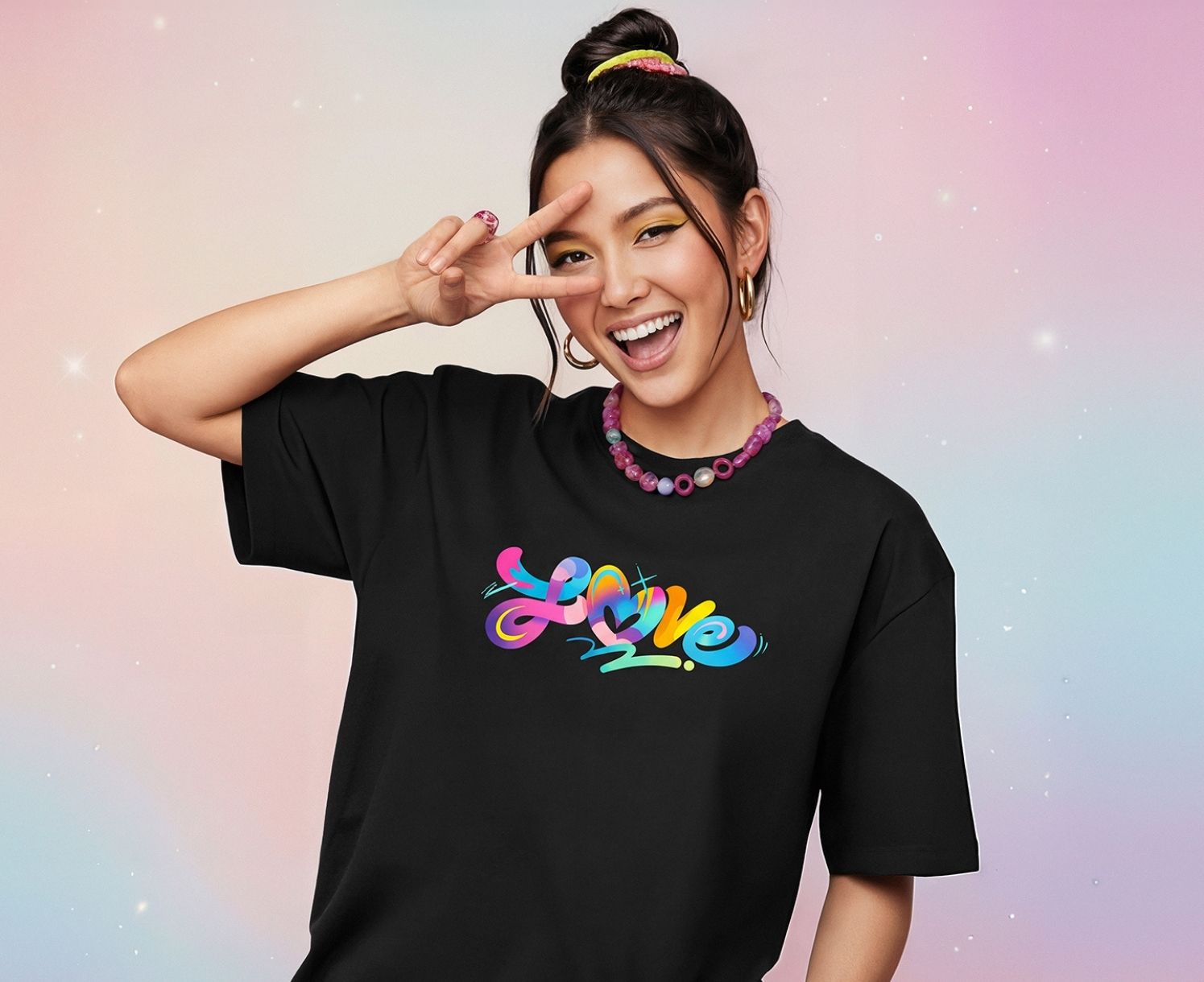 - 'Love' featuring the artist's signature 'OPN Heart' design at center chest