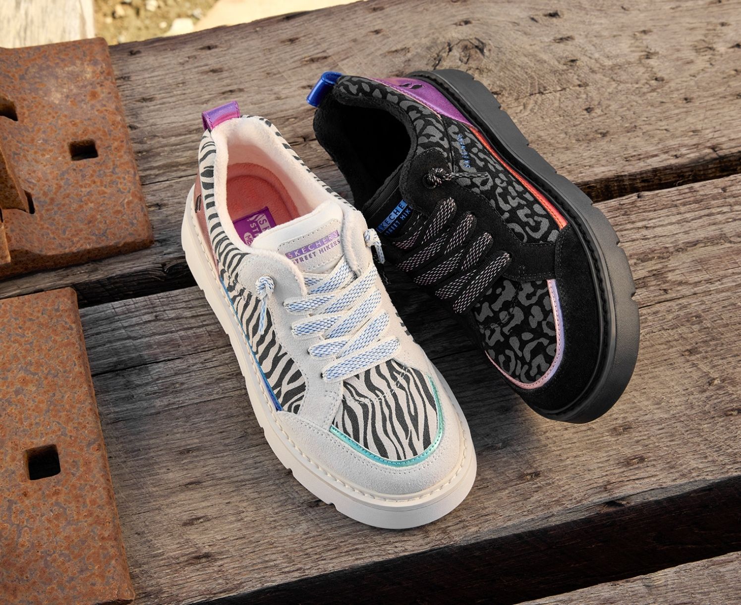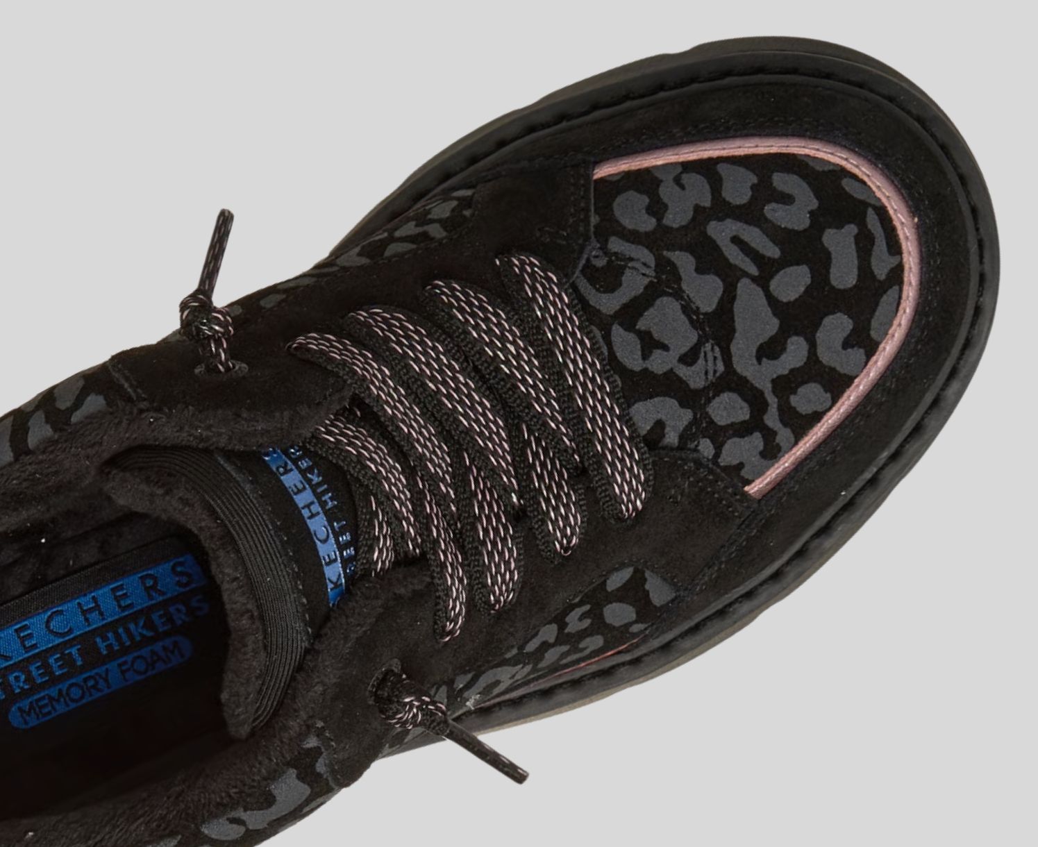 - Animal print suede and metallic duraleather upper with tied-off chunky laces