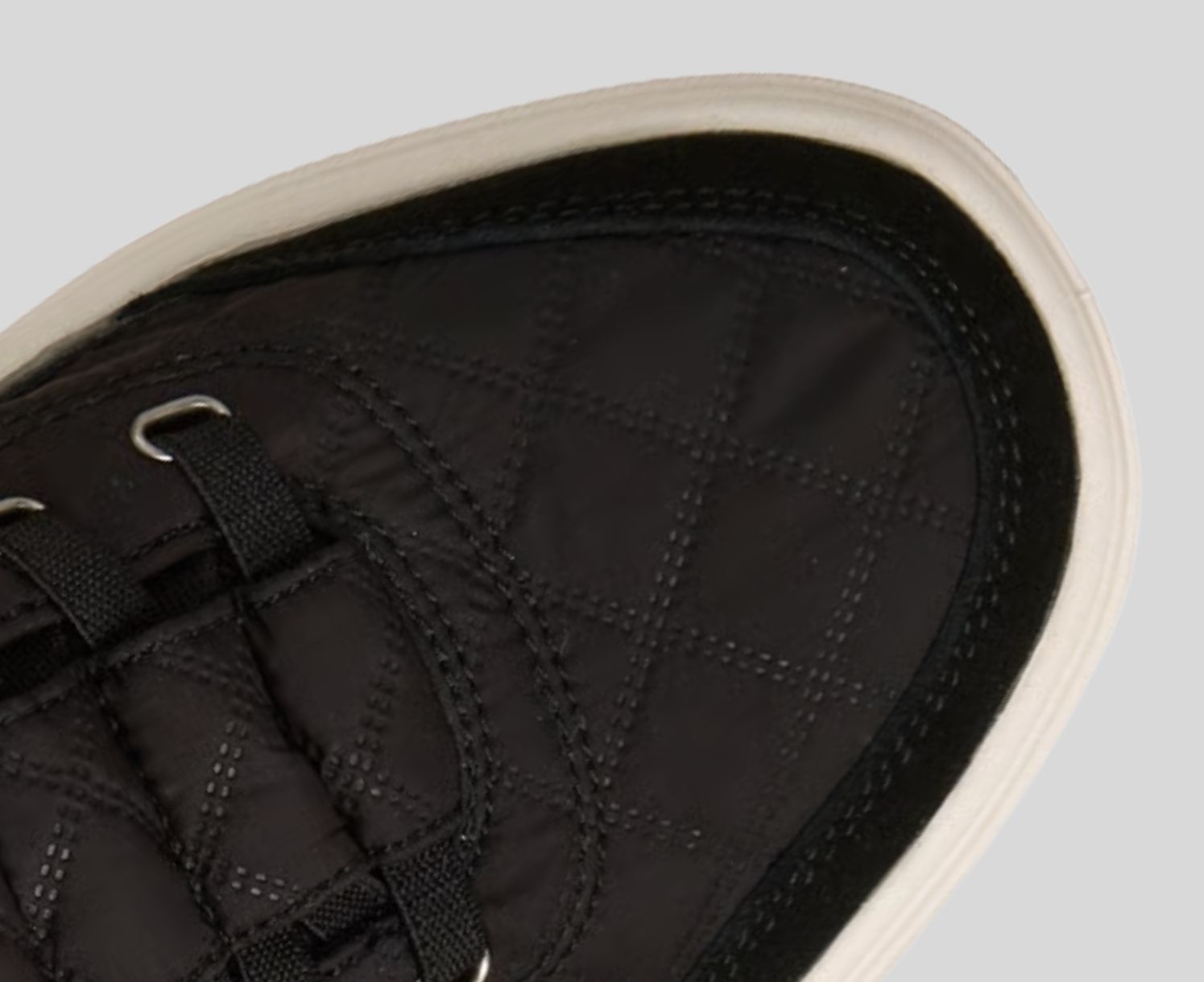 - Air-quilted nylon, duraleather, and suede overlay upper