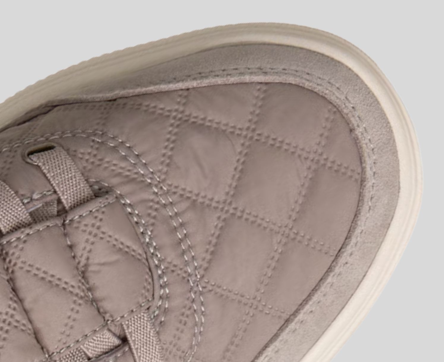 - Air-quilted nylon, duraleather, and suede overlay upper