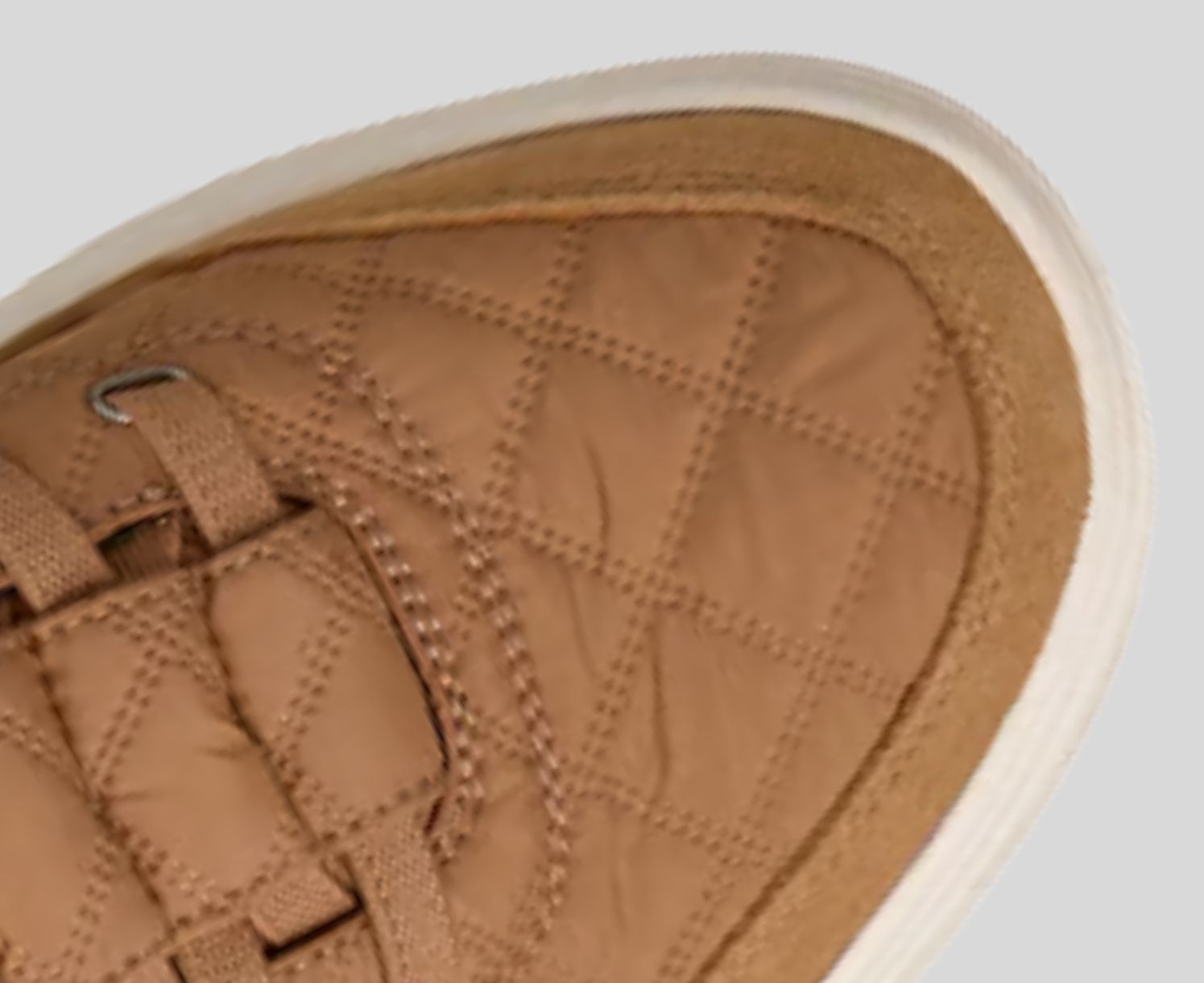 - Air-quilted nylon, duraleather, and suede overlay upper