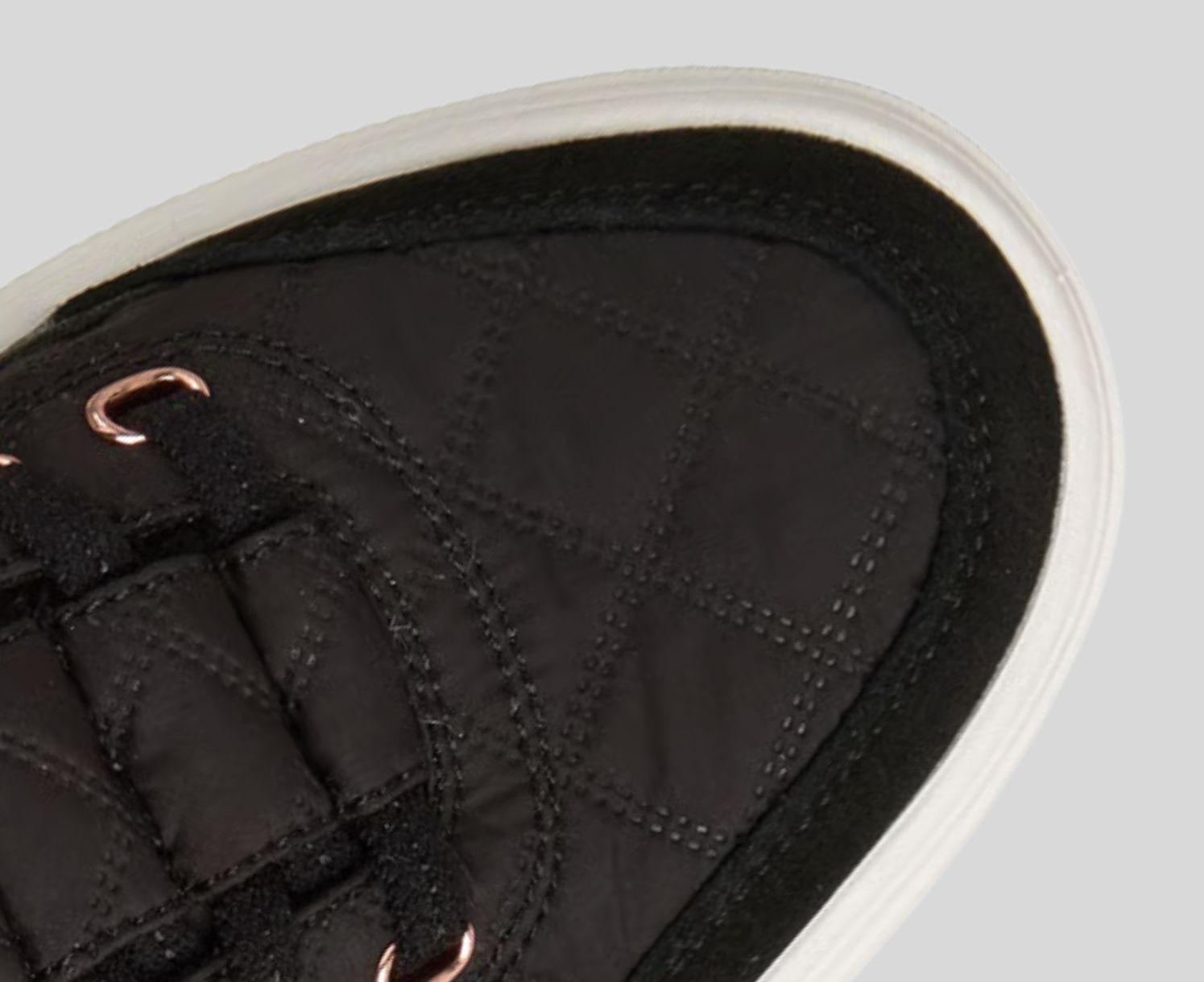 - Air-quilted fabric and genuine suede upper with stretch laces