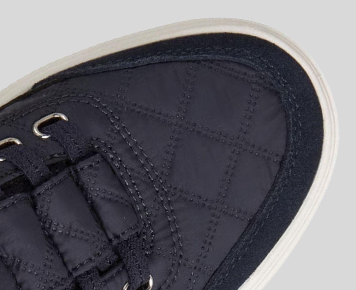 - Air-quilted fabric and genuine suede upper with stretch laces