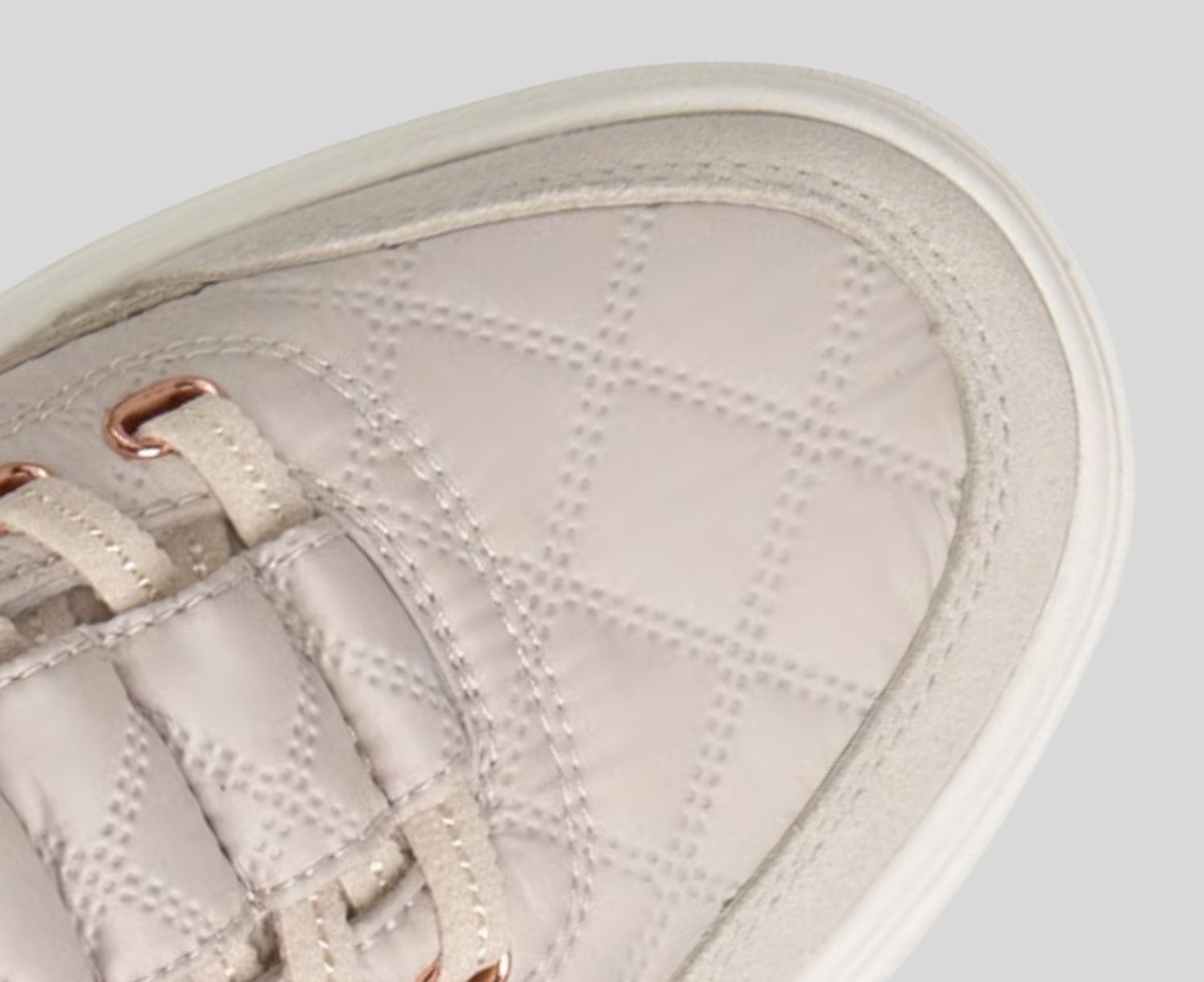 - Air-quilted fabric and genuine suede upper with stretch laces
