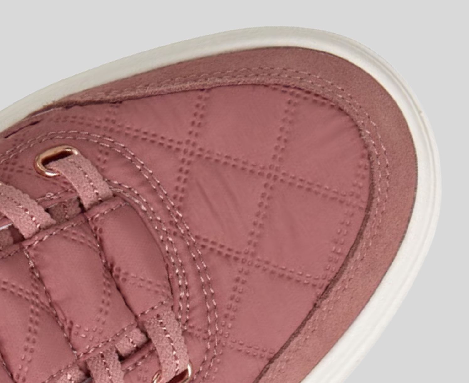- Air-quilted fabric and genuine suede upper with stretch laces