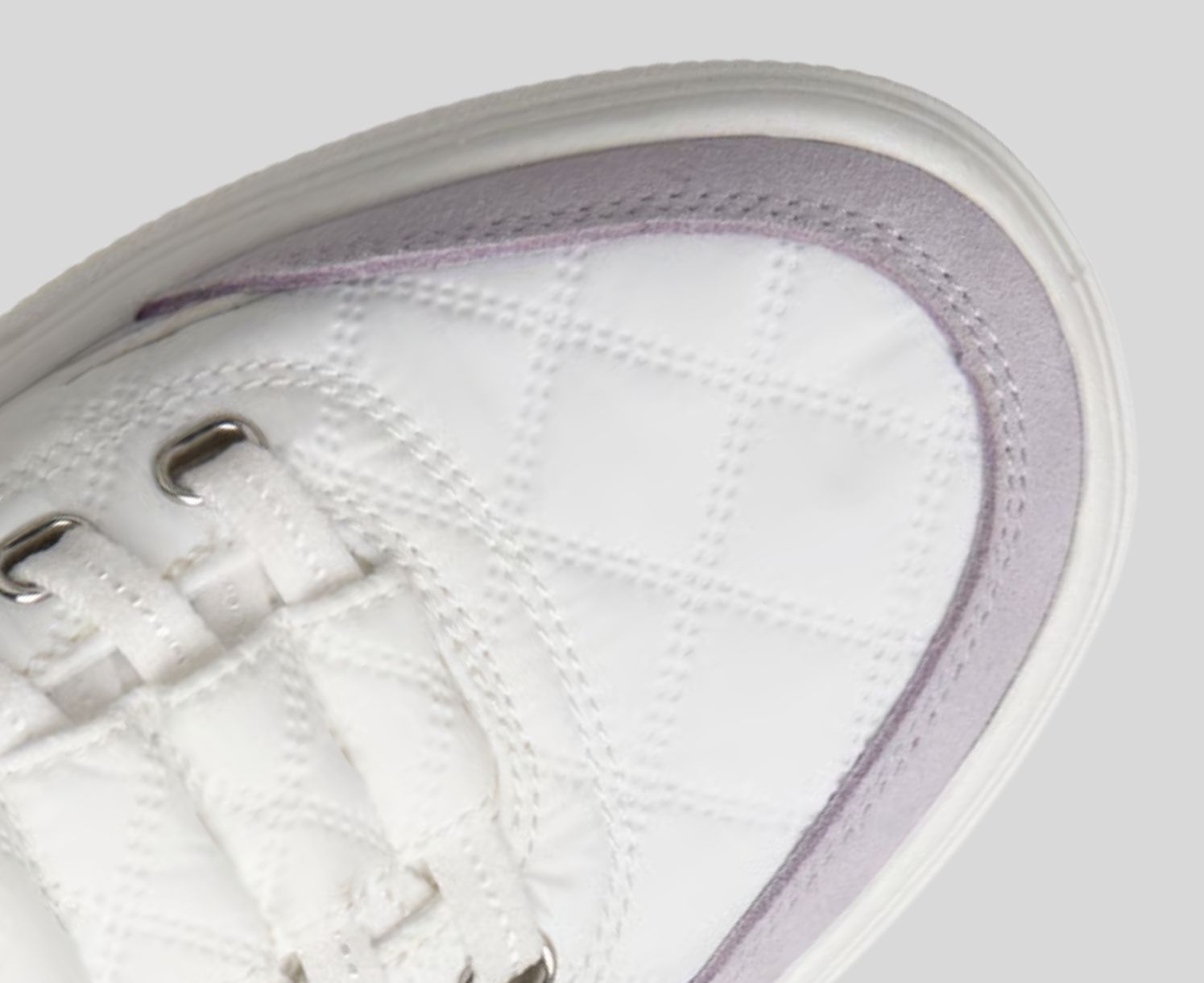 - Air-quilted fabric and genuine suede upper with stretch laces