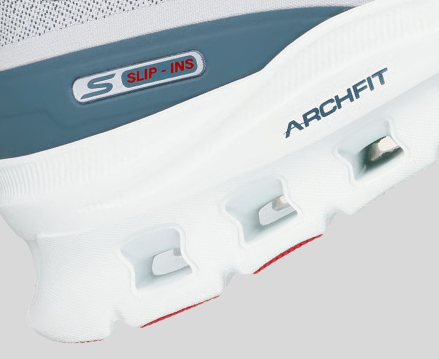 • Patented Skechers Arch Fit® insole system with podiatrist-certified arch support, developed with 20 years of data and 120,000 unweighted foot scans