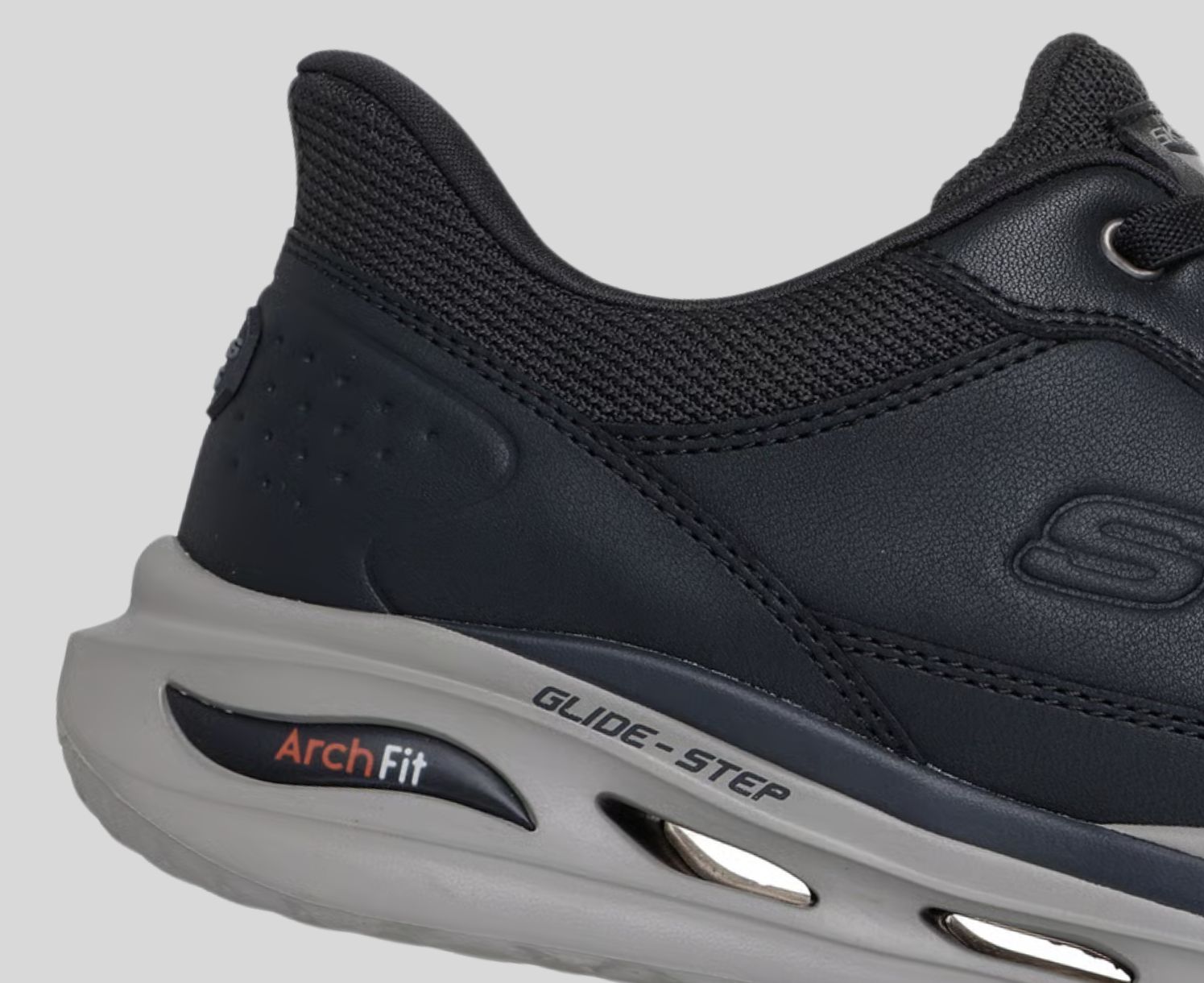 • Patented Skechers Arch Fit® insole system with podiatrist-certified arch support developed with 20 years of data and 120,000 unweighted foot scans