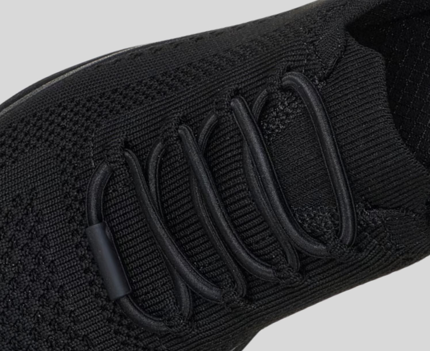 Tied-off decorative laces and an easy slip-on design. Laces never come untied.