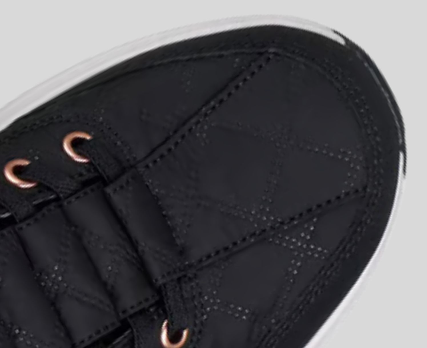 • Air-quilted fabric and duraleather upper with tied-off stretch laces