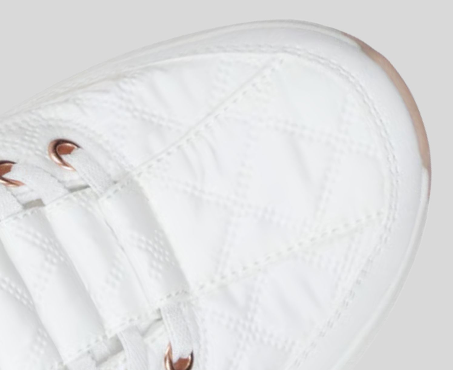 - Air-quilted fabric and duraleather upper with tied-off stretch laces