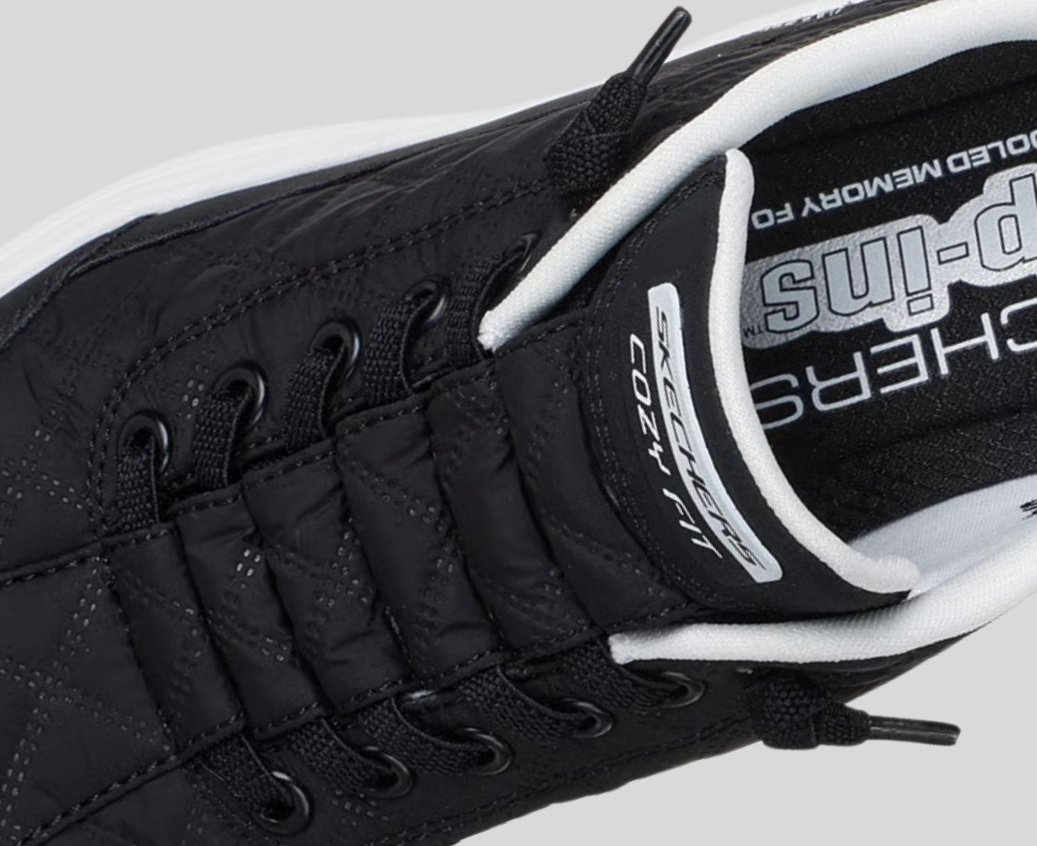 Skechers Cozy Fit® premium soft quilted materials wrap your feet in luxury, providing a cozy, natural fit for ultimate comfort.