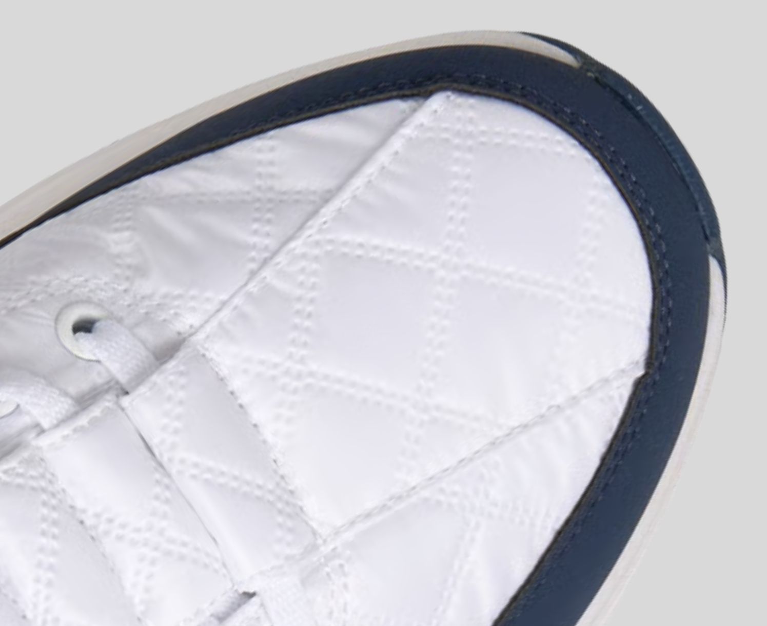 • Quilted fabric and synthetic overlay upper with tied-off stretch laces