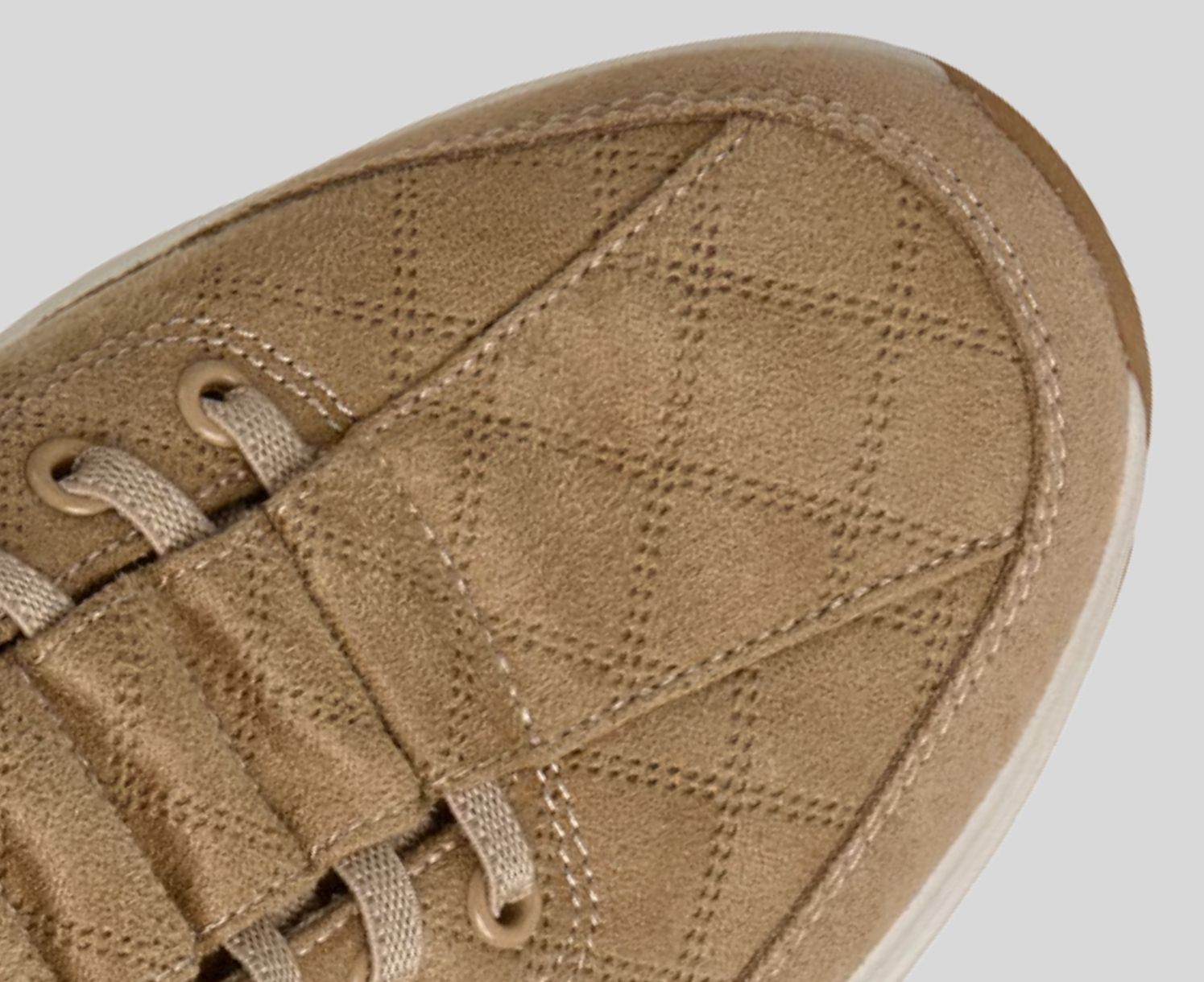- Air-quilted suede and synthetic upper with tied-off stretch laces