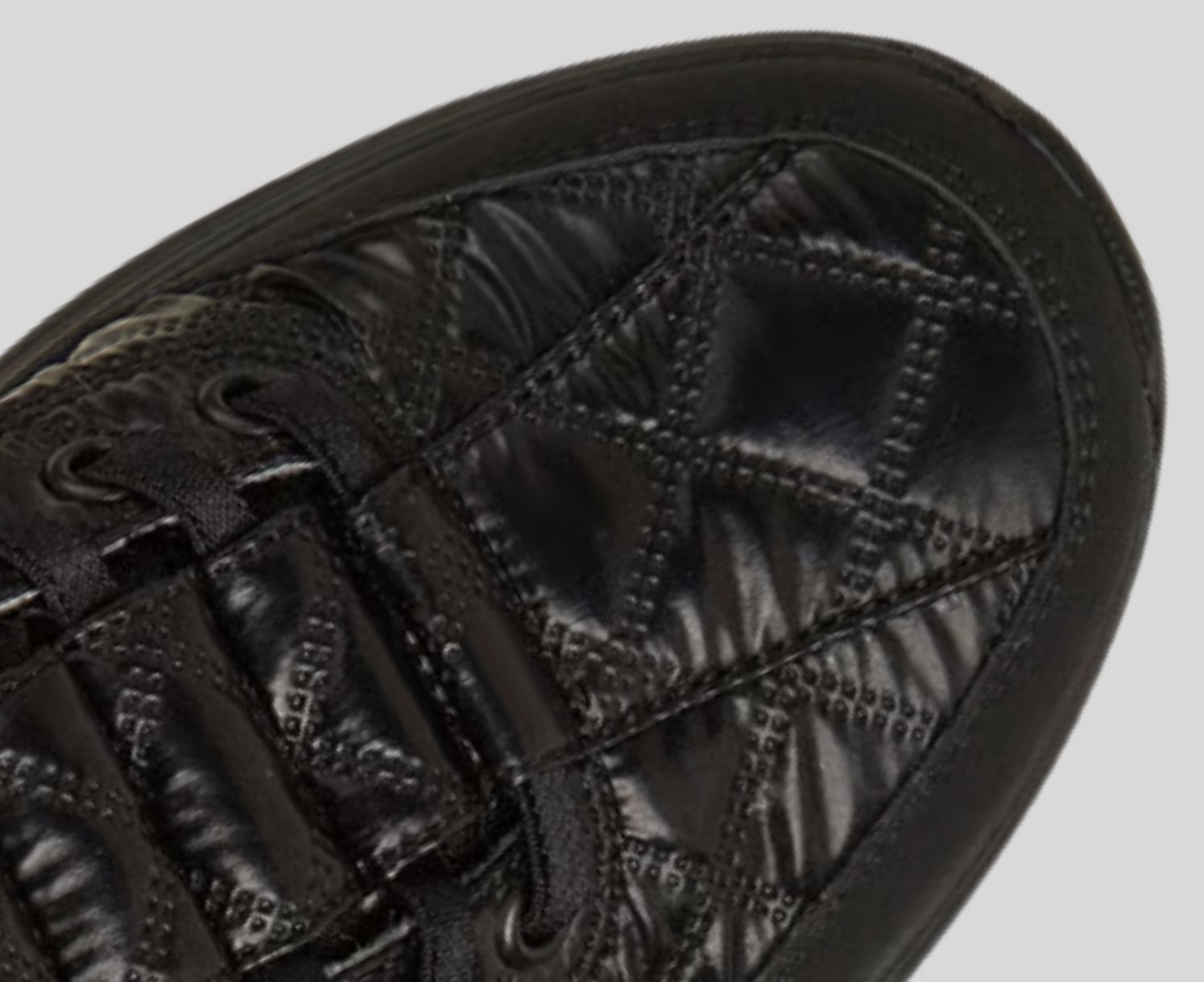 - Iridescent air-quilted fabric and synthetic overlay upper with tied-off stretch laces