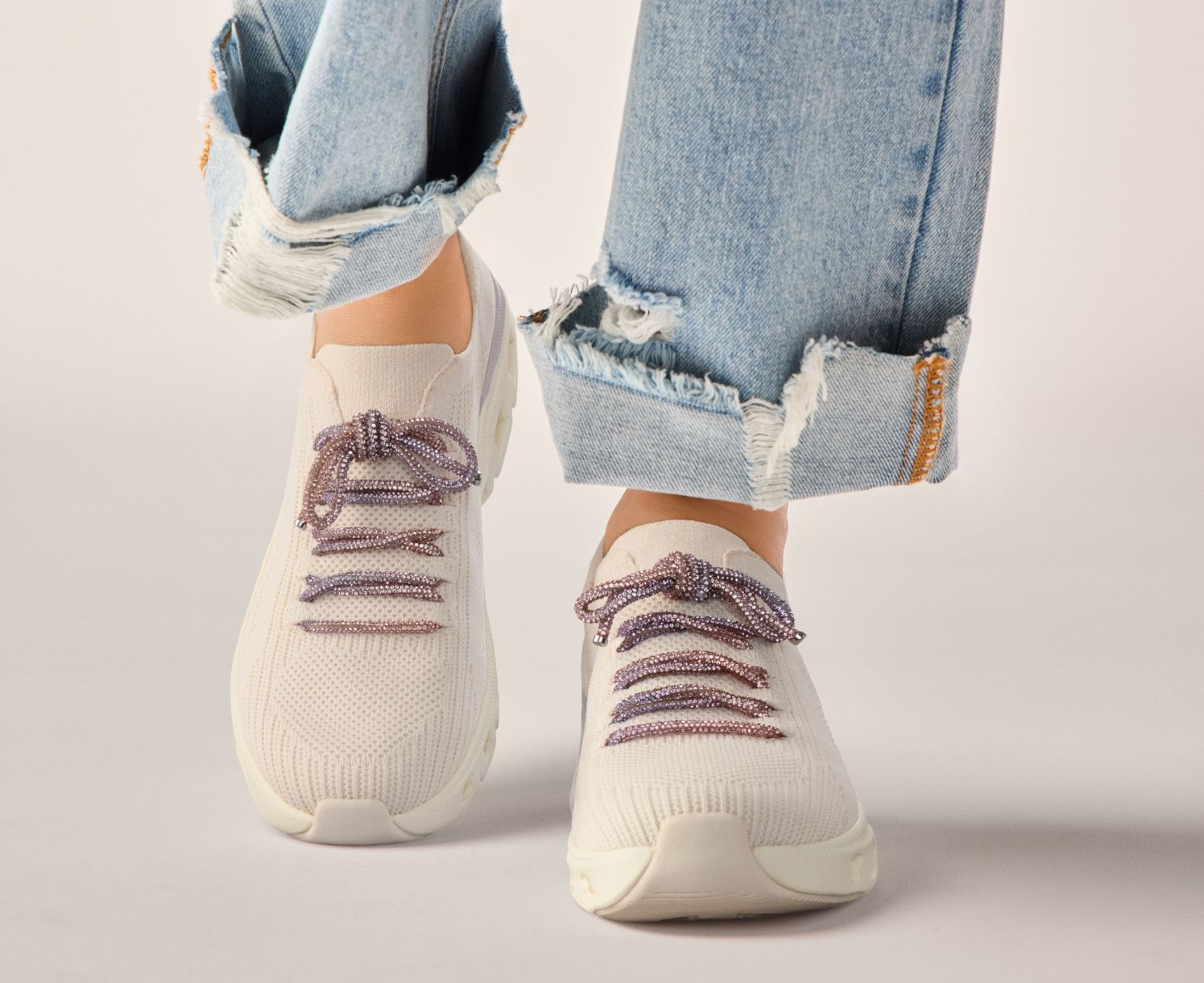 STEP-N-GOS™ Ease into everyday comfort with a touch of dazzle wearing Skechers Hands Free Slip-ins®: Glide-Step® Pro - Rhinestone Radiance. Designed with our Heel Pillow®, this casual vegan slip-on features a Stretch Fit® engineered knit upper with rhinestone-embellished deco laces and a cushioned Skechers Air-Cooled Memory Foam® insole.
