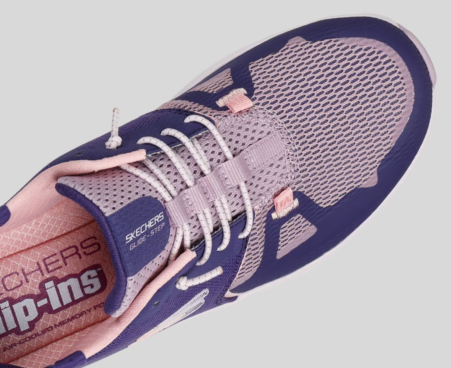 The Skechers Glide-Step® geometric midsole is designed to provide natural momentum with every step, offering a pillow-like soft landing and explosive takeoff.