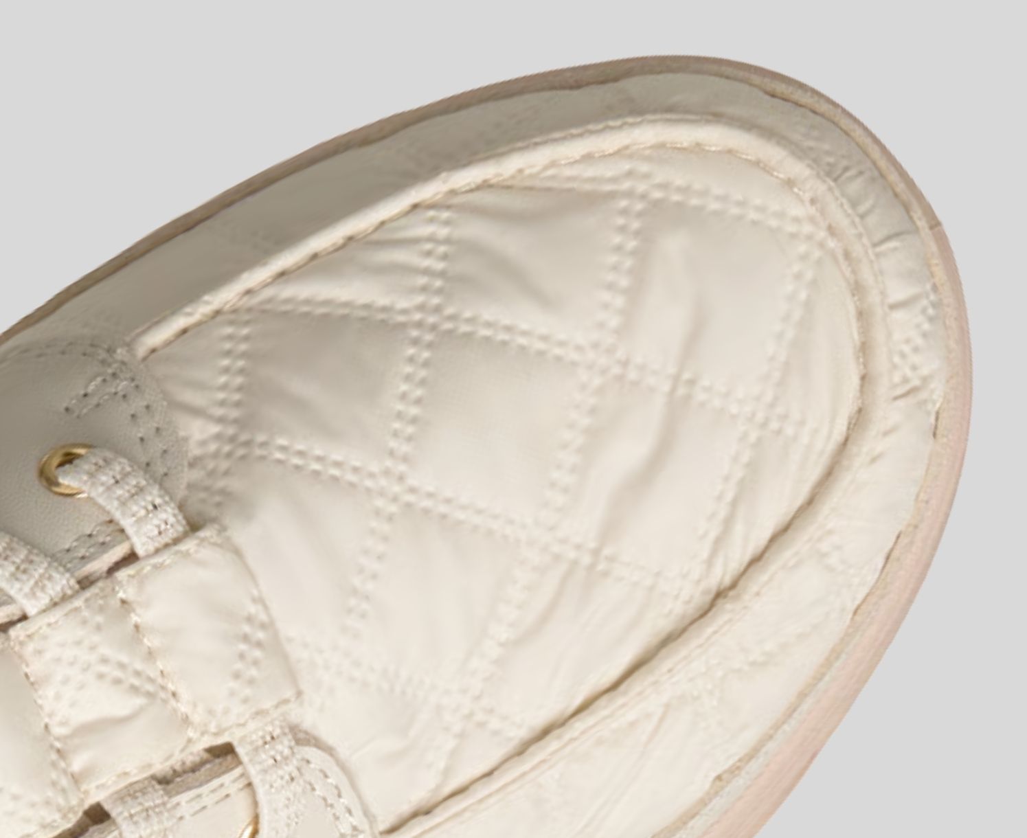 • Air-quilted mesh and synthetic overlay upper with tied-off stretch laces
