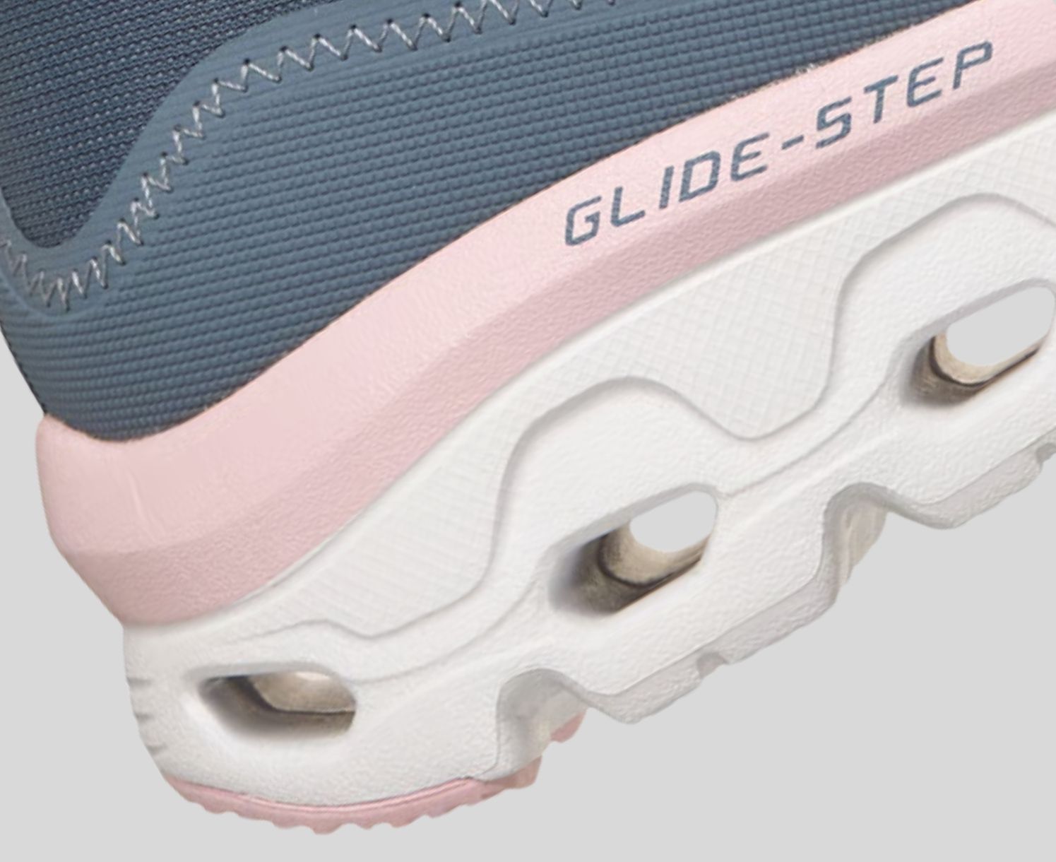 The Skechers Glide-Step® geometric midsole is designed to provide natural momentum with every step, offering a pillow-like soft landing and explosive takeoff.