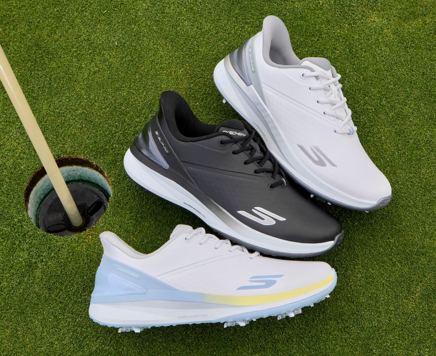 Play at your peak with Matt Fitzpatrick-inspired performance in Skechers Hands Free Slip-ins® Golf™: Blade Tour. This slip-on waterproof design features a leather-like Clarino™ upper that delivers a premium feel. It's enhanced with our innovative Heel Pillow®, adjustable laces, supportive Arch Fit® insole, lightweight ECO FLIGHT™ cushioning, and responsive HYPER BURST PRO™ sock liner. The design is complete with Softspikes® Tour Flex Pro spike outsole for superior traction.