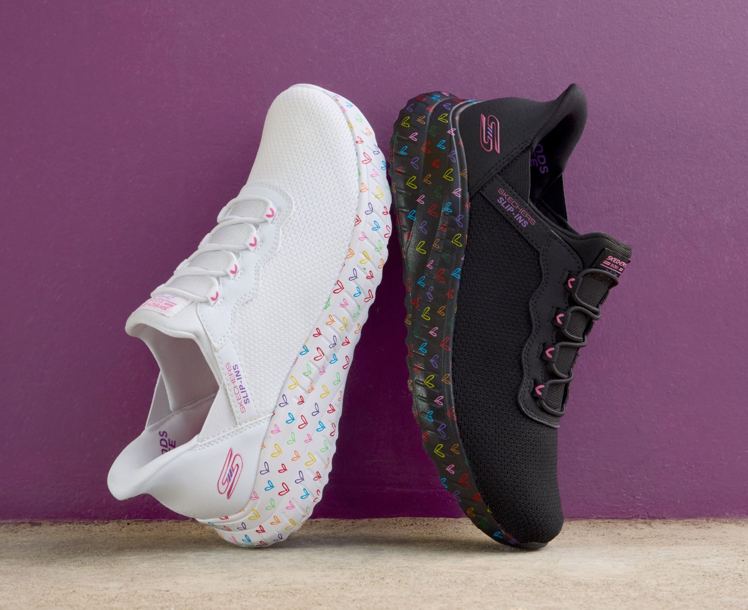 - Contoured shock-absorbing midsole with multicolor heart print