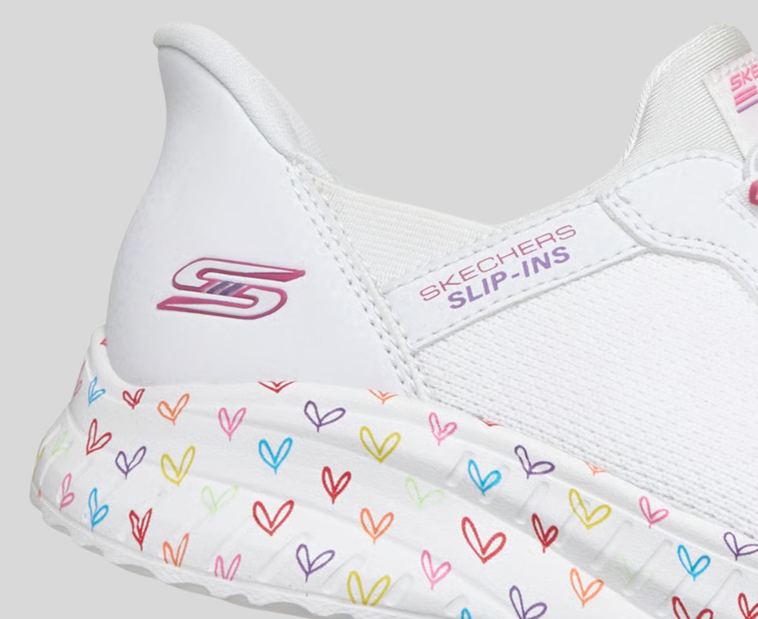 Just Slip In® to heart-warming style and comfort with Skechers Hands Free Slip-ins® x JGoldcrown: BOBS Sport™ Squad Chaos - Joy Glow.