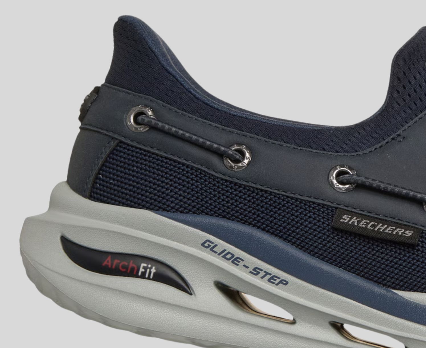 - Patented Skechers Arch Fit® insole system with podiatrist-certified arch support developed with 20 years of data and 120,000 unweighted foot scans