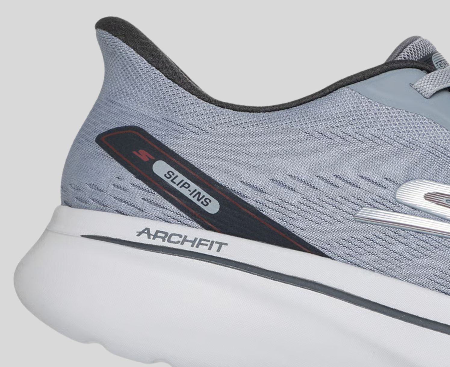 • Patented Skechers Arch Fit® insole system with podiatrist-certified arch support, developed with 20 years of data and 120,000 unweighted foot scans