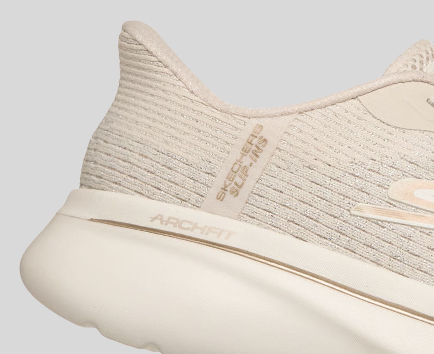 - Patented Skechers Arch Fit® insole system with podiatrist-certified arch support, developed with 20 years of data and 120,000 unweighted foot scans