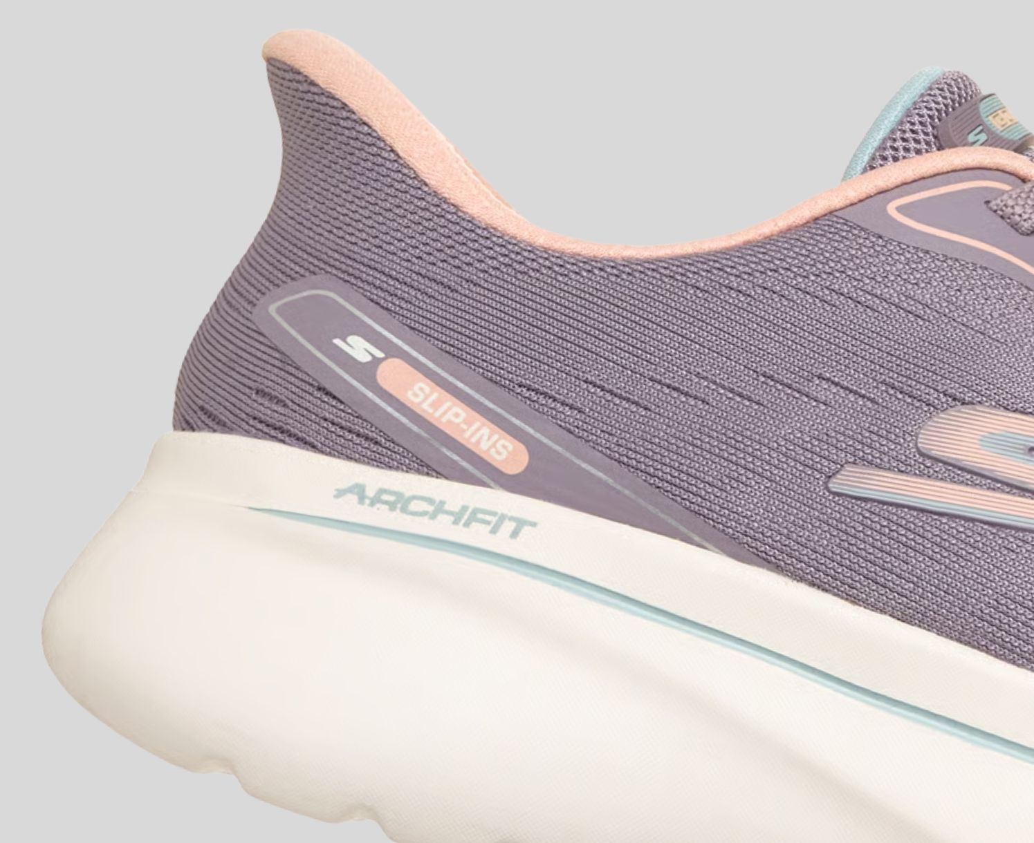 - Patented Skechers Arch Fit® insole system with podiatrist-certified arch support, developed with 20 years of data and 120,000 unweighted foot scans