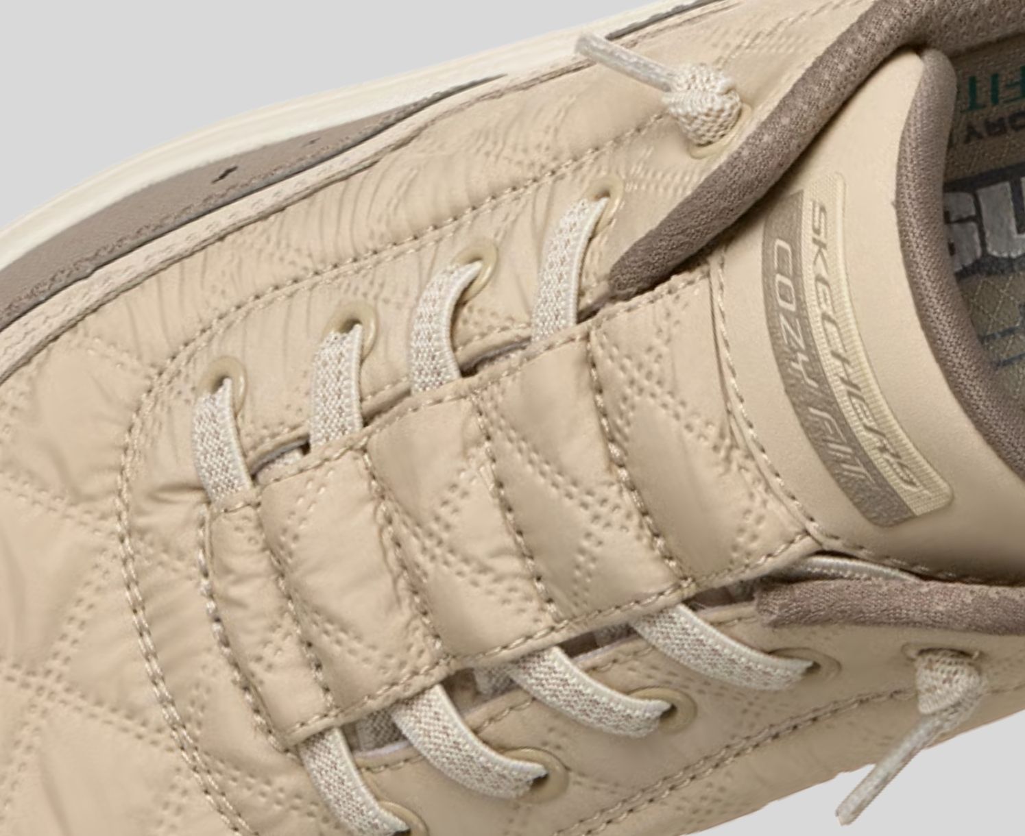 Skechers Cozy Fit® premium laser-stitched materials wrap your feet in luxury, providing a soft, natural fit for ultimate comfort.