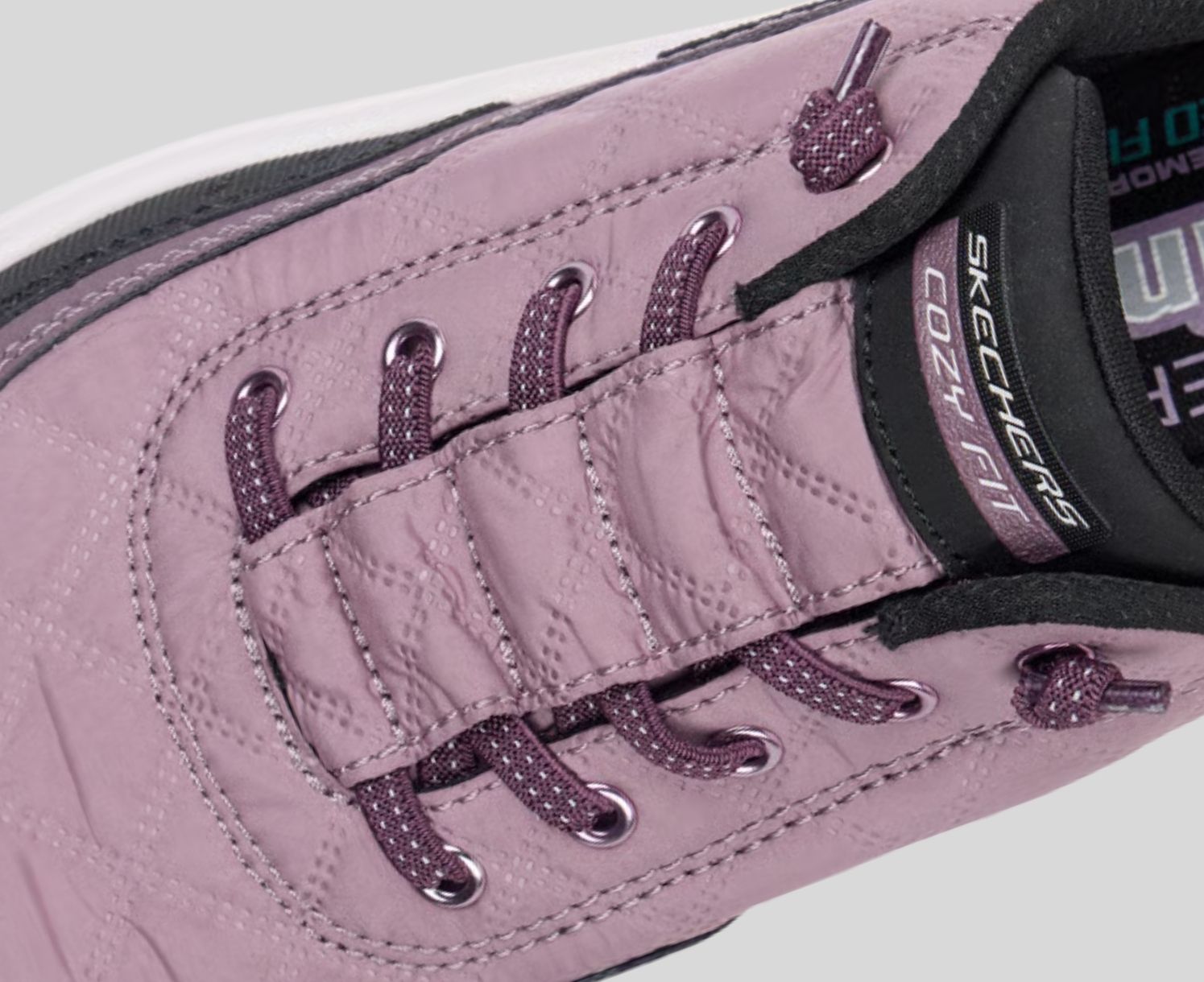 Skechers Cozy Fit® premium laser-stitched materials wrap your feet in luxury, providing a soft, natural fit for ultimate comfort.