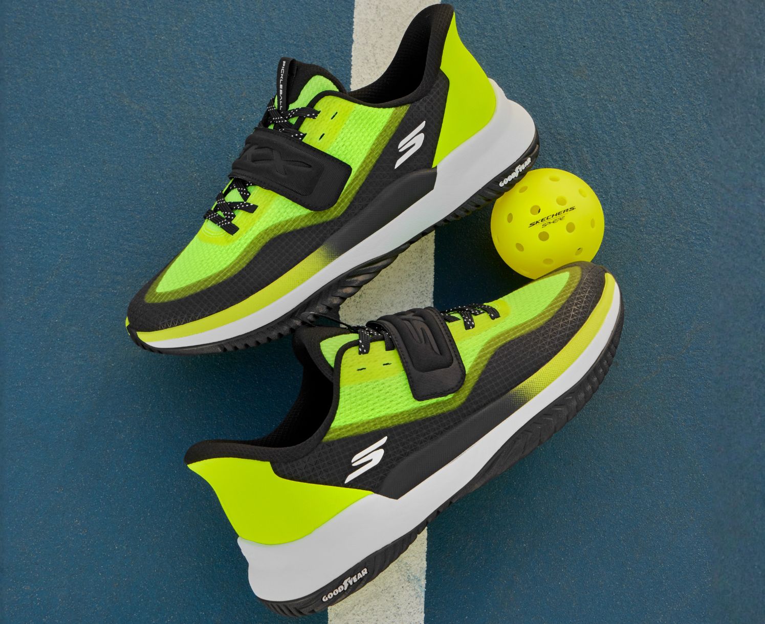 - Goodyear (and Winged Foot Design) are trademarks of or licensed to The Goodyear Tire & Rubber Company used under license by Skechers USA, Inc., Manhattan Beach, CA. © 2026 The Goodyear Tire & Rubber Company. This or any footwear cannot completely eliminate the risk of slipping.
