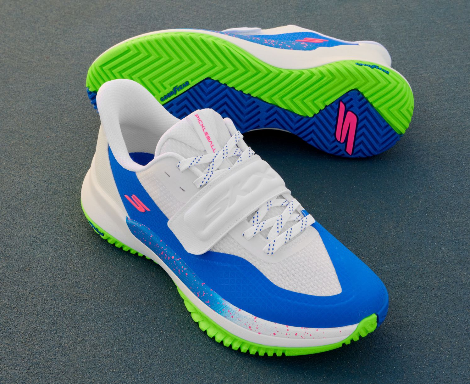 Feel the advantage in every game with Skechers Hands Free Slip-ins® Relaxed Fit®: Viper Court Elite - 2.0. Designed with our Heel Pillow®, this roomy slip-on is created specifically for the competitive pickleball athlete and features an athletic mesh and TPU overlay upper with adjustable laces, an adjustable top strap for enhanced lockdown, a removable Arch Fit® insole, and lightweight ECO FLIGHT™ midsole cushioning. The design is complete with a Goodyear® gold compound non-marking outsole built for increased durability and controlled slides on the pickleball court surface.