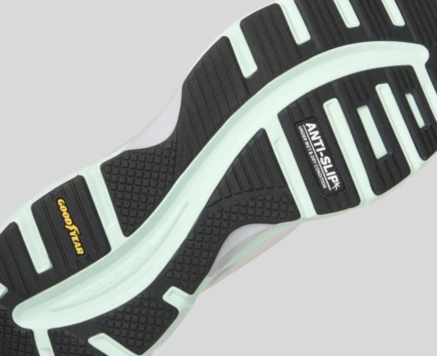 - Goodyear (and Winged Foot Design) are trademarks of or licensed to The Goodyear Tire & Rubber Company used under license by Skechers USA, Inc., Manhattan Beach, CA. © 2026 The Goodyear Tire & Rubber Company. This or any footwear cannot completely eliminat