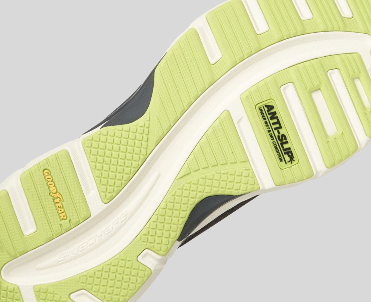 - Goodyear (and Winged Foot Design) are trademarks of or licensed to The Goodyear Tire & Rubber Company used under license by Skechers USA, Inc., Manhattan Beach, CA. © 2026 The Goodyear Tire & Rubber Company. This or any footwear cannot completely eliminat
