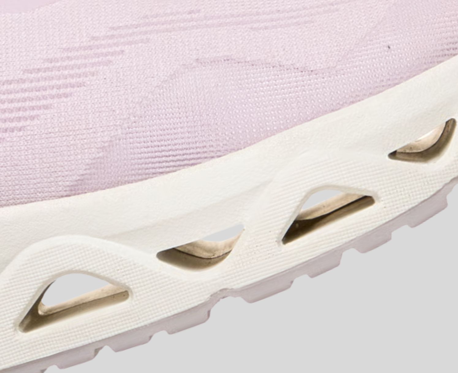 - Mesh upper with tied-off stretch laces