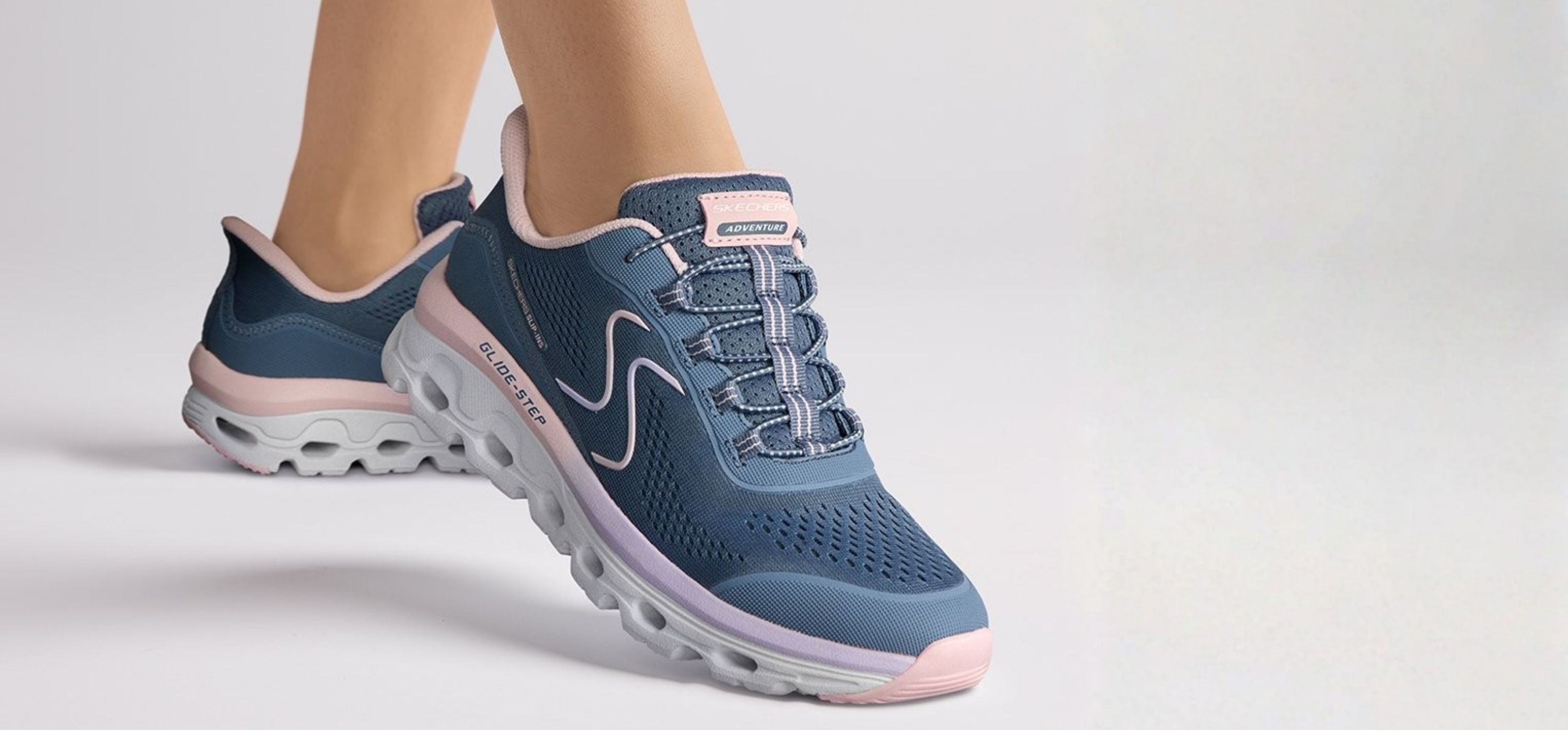 The Skechers Glide-Step® geometric midsole is designed to provide natural momentum with every step, offering a pillow-like soft landing and explosive takeoff.